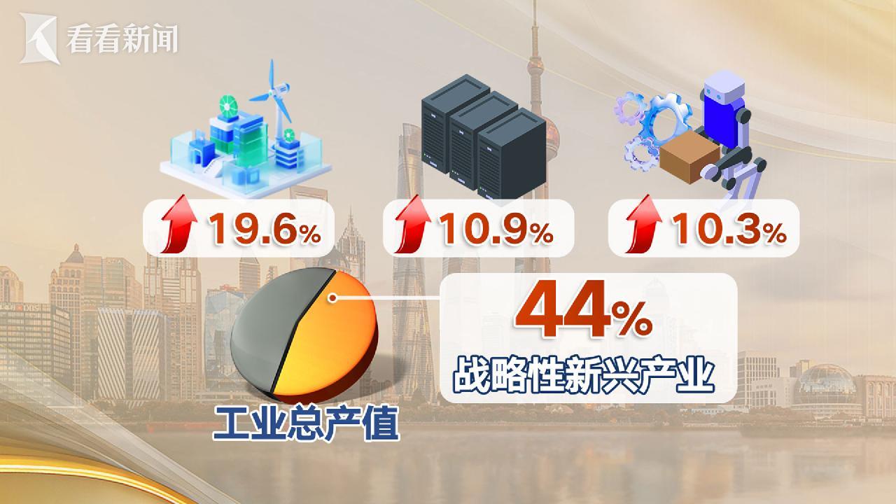此外,工业战略性新兴产业制造业总产值同比增长7.3%。其中,新能源产业增长近两成,新一代信息技术和高端装备产业增长也都超过了一成。如今,上海工业战略性新兴产业产值占全市工业总产值的比重已接近一半。