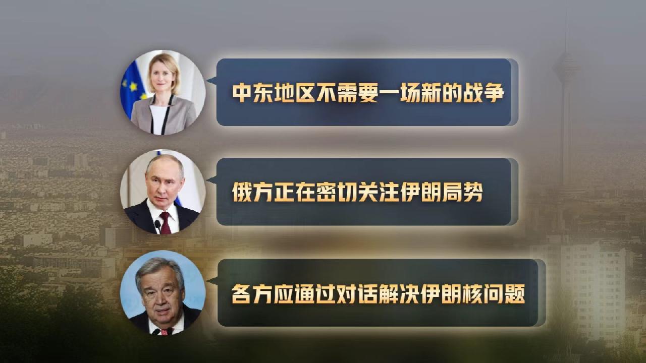 伊朗局势剑拔弩张之际,多方试图为形势降温。欧盟外交与安全政策高级代表卡拉斯29日表示,中东地区不需要一场新的战争;俄罗斯总统普京同日说,俄方正在密切关注伊朗局势;联合国秘书长古特雷斯也敦促各方通过对话解决伊朗核问题,避免产生灾难性后果。