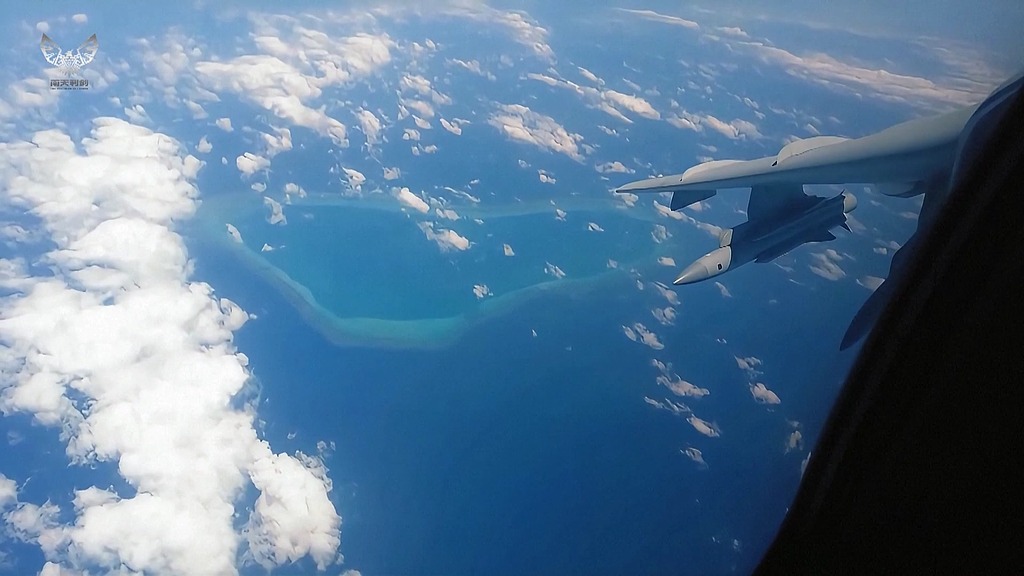 刚刚过去的周末,中国人民解放军南部战区在黄岩岛领海领空及周边海空域组织海空兵力开展战备警巡。当天,我军自主研发的新一代远程轰炸机轰-6K,与歼击机组成编队飞抵黄岩岛空域,随后沿东南方向巡航,彰显我国对该区域领海领空的实际管辖。