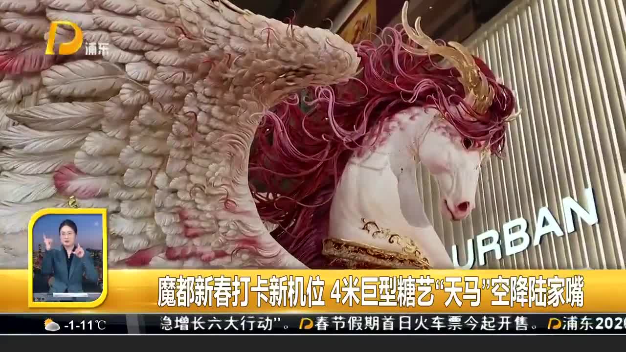 魔都新春打卡新机位 4米巨型糖艺“天马”空降陆家嘴