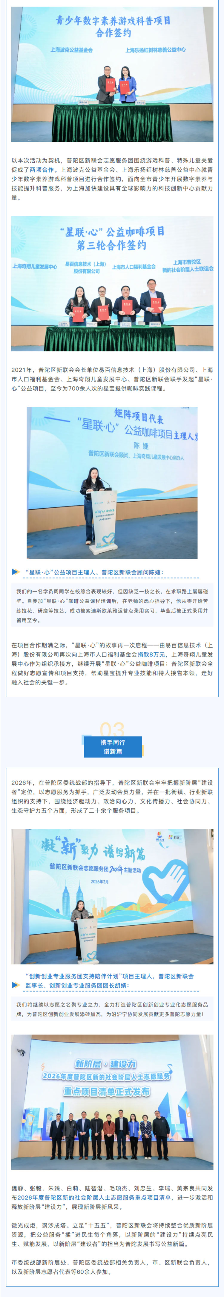 发布年度重点项目清单!普陀区新联会志愿服务团2026年度主题活动举办