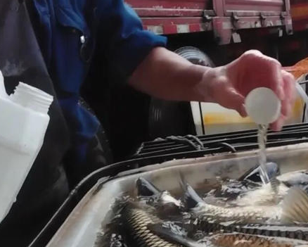 而在山东临沂强盛海鲜批发市场,商户甚至会使用丁香酚兑工业酒精来麻醉活鱼。记者看到,商户往活鱼筐和水池里随意添加麻醉剂,剂量、浓度全凭手感,几瓶盖就能麻醉一池几千斤鱼。