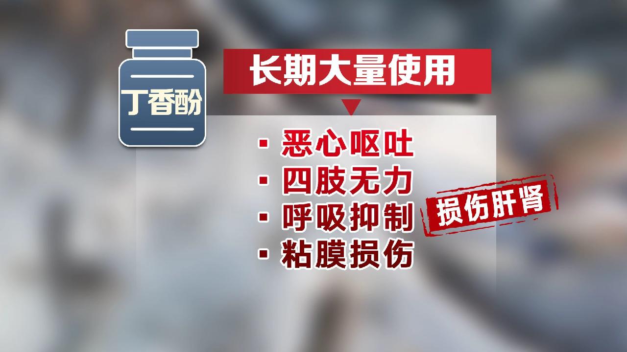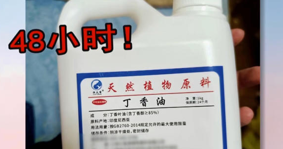记者又找到江西吉安一家生产丁香酚的厂家,厂家承认,原料从印尼进口,以食品添加剂名义出厂,被鱼贩子用于麻醉活鱼。一些小作坊购买原料后包装成“三无”麻药流入市场。按照厂家的说法,丁香酚在鱼体内完全代谢至少需48小时。
