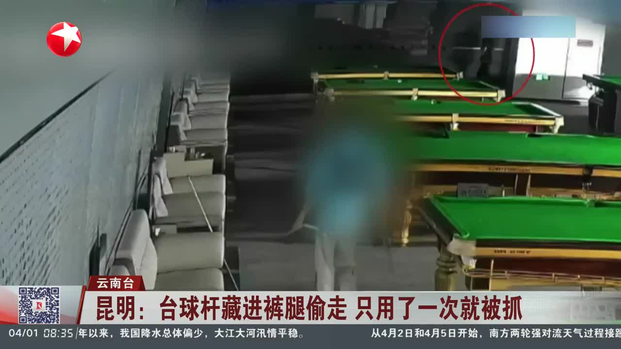 昆明:台球杆藏进裤腿偷走 只用了一次就被抓