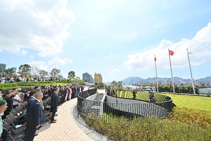 香港启德体育园1日举行园区开幕后首个国庆升旗仪式,庆祝中华人民共和国成立76周年,逾百位嘉宾出席。同场还举办充满浓厚中华文化特色的互动摊位及国家安全教育展览,吸引大批市民及游客参与。