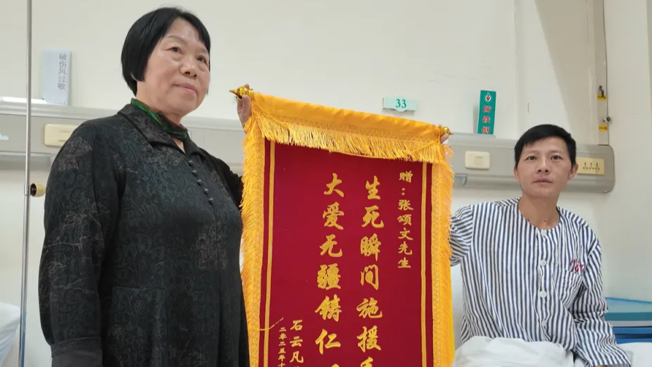 潘嘉承见状,赶忙招呼同事取来筷子,塞在陈某牙齿之间,避免其无意识咬伤自己的舌头,又取来纸巾帮其擦拭口水,保持呼吸畅通。