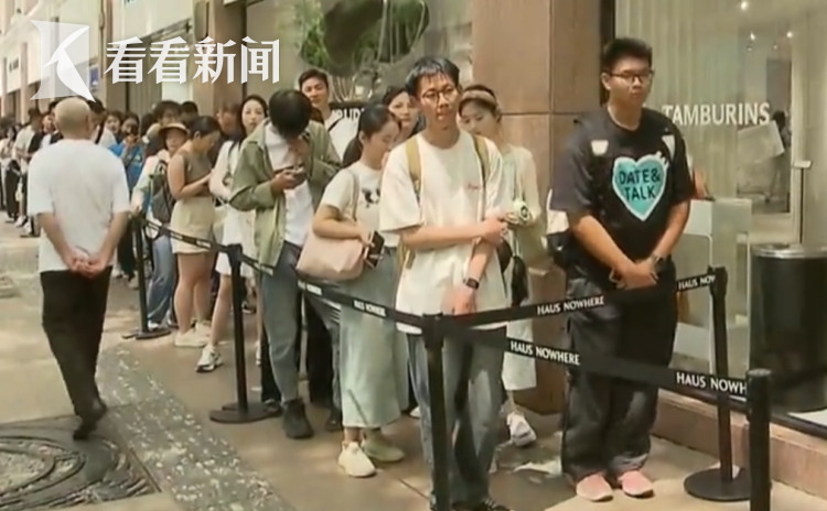 在淮海东路这家潮牌店门口,一早就有消费者在排队等开业了。这家店在社交网络上热度挺高,外籍游客也多,一、二层店铺每月的退税可达800笔。