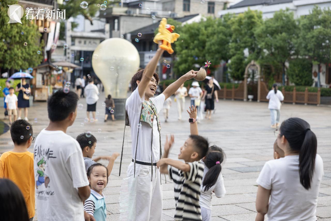 游戏体验趣味缤纷,“戏剧+X”的融合玩法更显巧思。“戏剧奇幻游”将整座小镇化作巨型互动解谜场域,古今中外的戏剧经典人物,以角色扮演的身份散落其间,游客在沉浸式互动中亲历名场面,展开智慧与勇气的博弈。此外,戏剧还与运动跨界、与益智游戏结合、与手作文创碰撞……各类活动将戏剧知识自然渗透,让欢乐与收获同行。