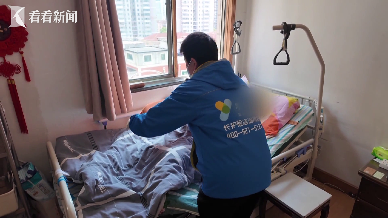 陈老伯是一位高位截瘫患者,长护险评估等级为六级,每周可享受7次上门护理服务。四年来,护理员刘志红每天如约而至,为他擦身、更换尿袋、进行专业护理。每次,光是将体重160多斤的陈老伯从床上挪到浴室,就要耗费近20分钟。加之老人伴有髋关节坏死、严重压疮和肌肉萎缩等问题,每一项照护都极具挑战。刘志红说,由于老人有造瘘口和尿袋,她每天都要帮他清理大小便,这需要极高的专业技巧和耐心。