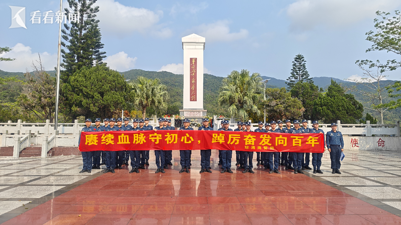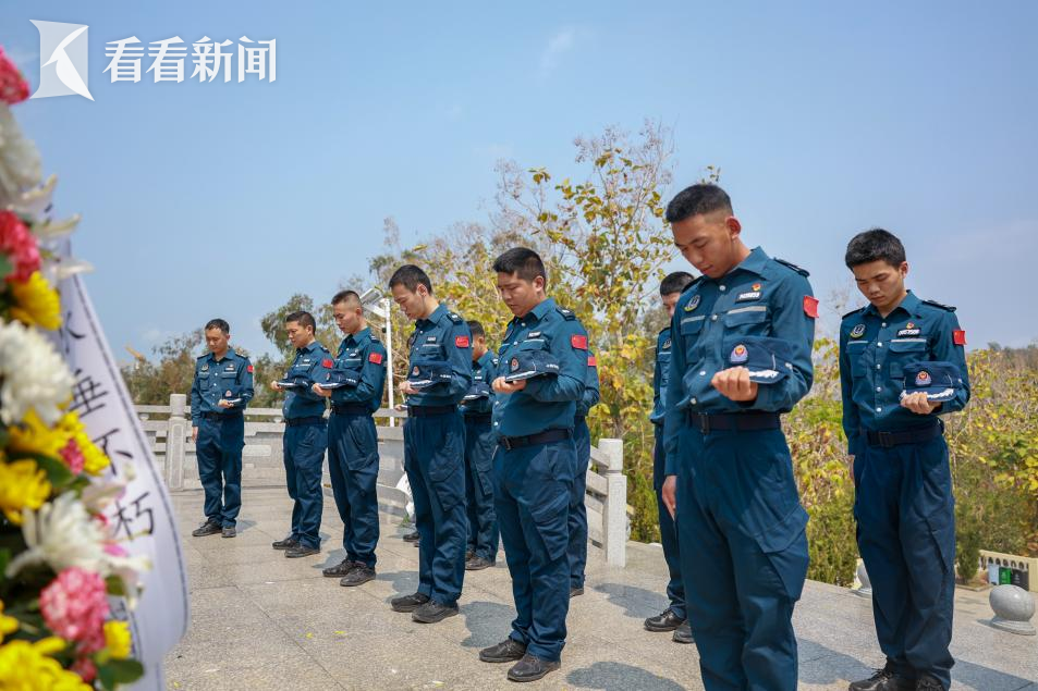 在位于三亚崖州的梅山革命烈士纪念园,三亚海警局全体执法员列队肃立,向烈士纪念碑三鞠躬、集体默哀,深切缅怀革命先烈。