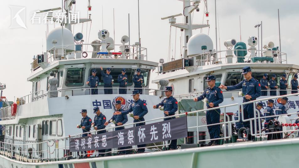 在南山港码头,随着指挥员一声令下,整齐列阵的海警舰艇编队集体鸣笛。海警执法员们将手中的花瓣缓缓撒入浩瀚南海,向那些为捍卫国家海洋主权、维护海上安全稳定、保护人民群众生命财产安全而英勇牺牲的英烈们,致以最崇高的敬意和最深切的缅怀。