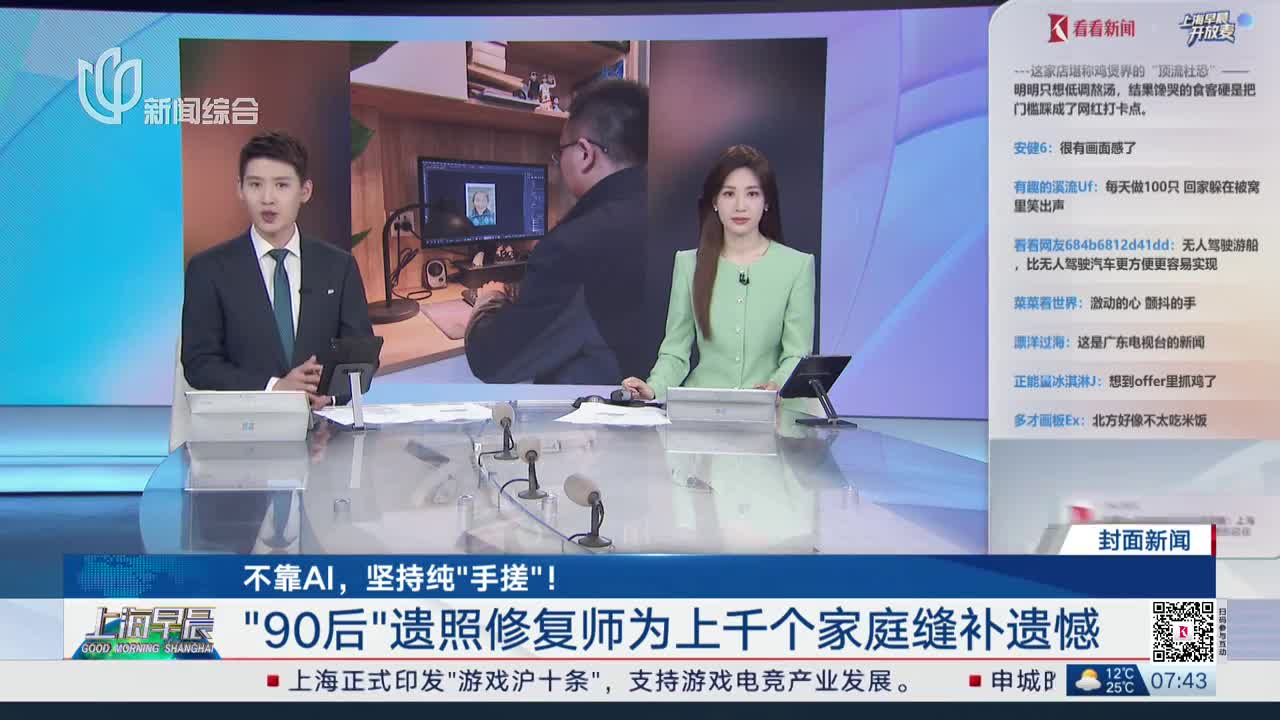 不靠AI,坚持纯“手搓”!“90后”遗照修复师为上千个家庭缝补遗憾