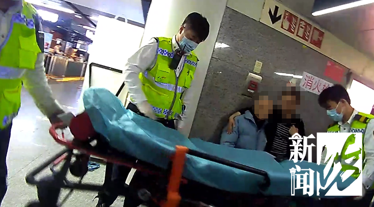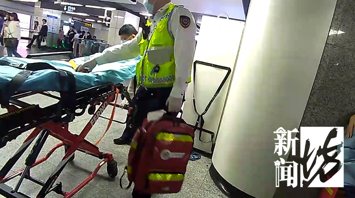 正在执勤的西藏南路站治安派出所民警吴屹铭、樊霄雷接到求助后立即赶赴现场,同步联系车站拨打120急救电话。此时,一名路过的医护人员主动亮明身份,加入救援队伍。