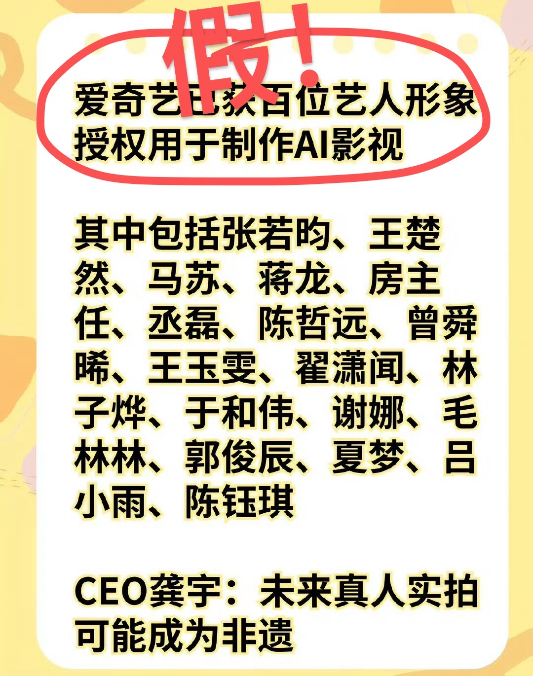 在今天的“爱奇艺世界·大会”上,爱奇艺高级副总裁刘文峰宣布已有超100位深度合作艺人与爱奇艺签署同意函,同意入驻爱奇艺纳逗proAI艺人库。爱奇艺仓促推出AI艺人库,本质已经在用技术捷径消解表演价值,既踩法律雷区,又有伦理风险。法律上,肖像权、声音权、影视作品知识产权在未经授权的情况下,就称入库,是平台把“受邀参加”当“签字画押”。难怪艺人迅速发声自证。