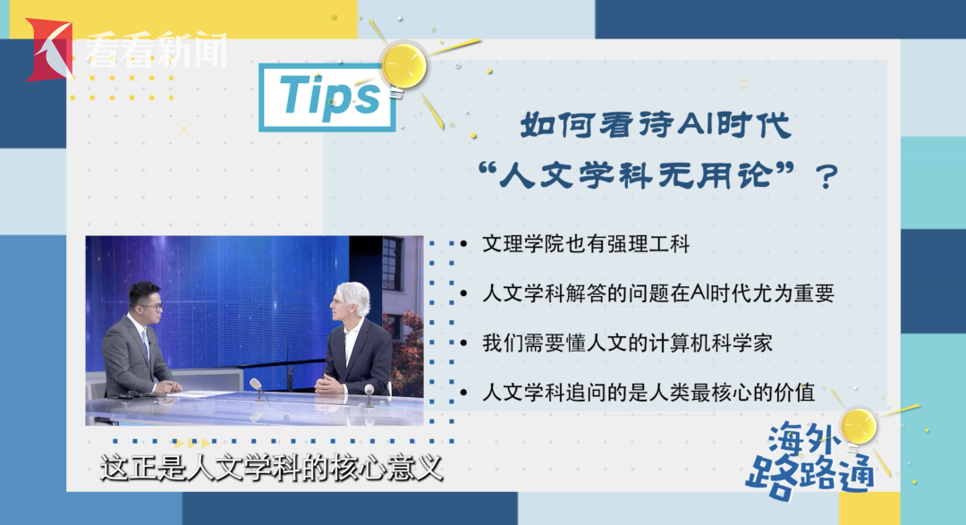 但他随后说道:“人文学科始终在追问一个重要问题:我们何以为人?人的感受意味着什么?我们该如何理解这个世界?”
