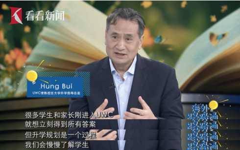 Bui先生把升学比作一段“旅程”。很多学生和家长刚升入高中,就想立刻得到所有答案,但升学规划其实是一个慢慢了解学生的过程。