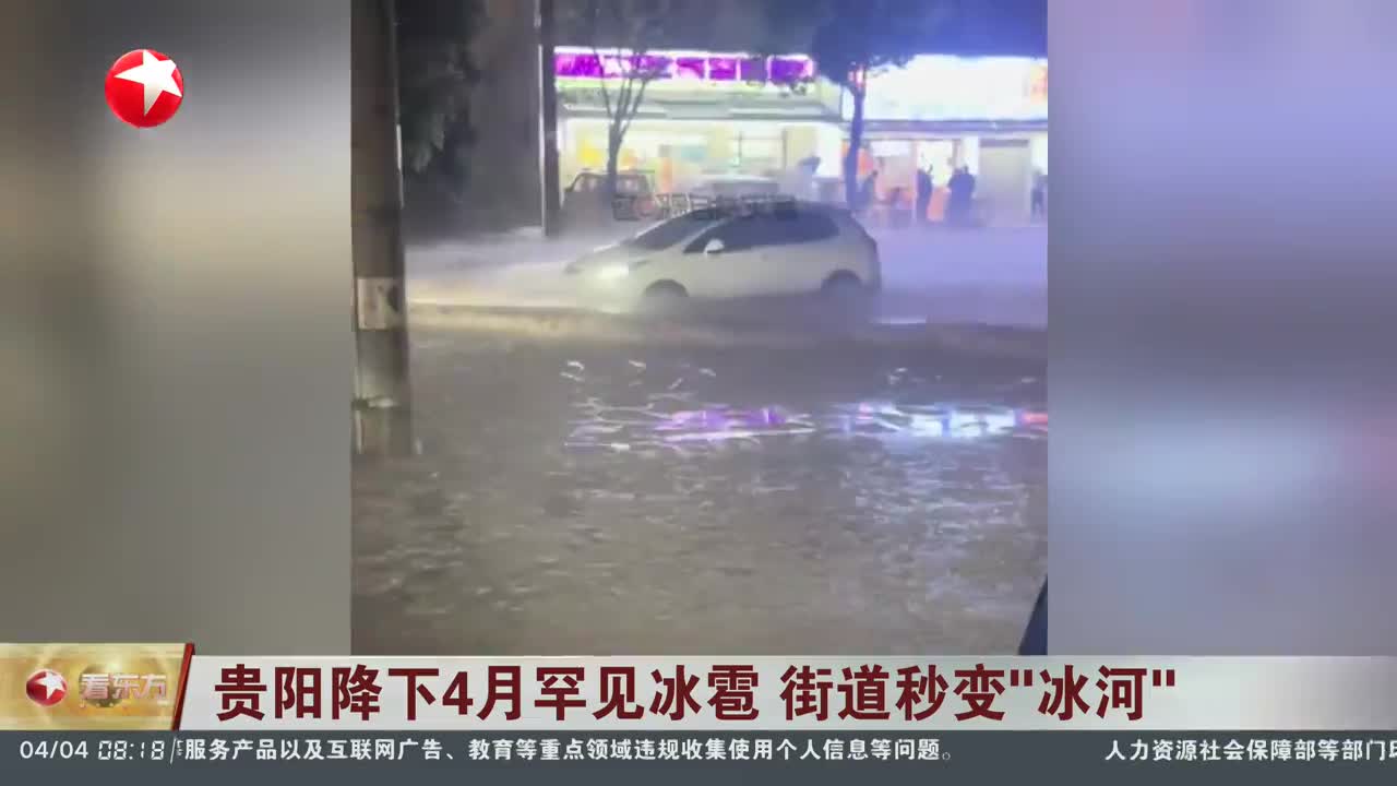 贵阳降下4月罕见冰雹 街道秒变“冰河”