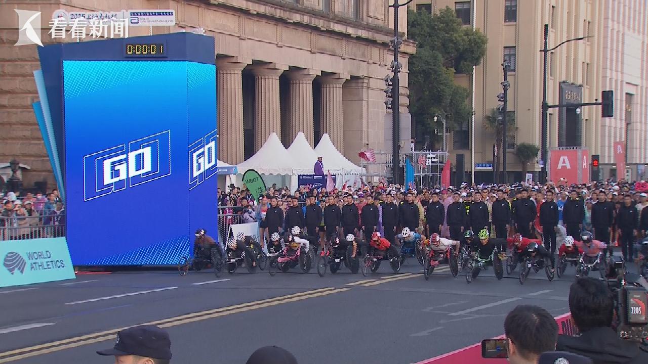 竞速轮椅马拉松于6:45率先开赛。除7名国内精英选手外,赛事首次邀请了12位国际精英轮椅选手参与,进一步提升了竞技水平与国际化程度。竞速轮椅男子组冠军罗兴传表示:“希望未来有更多国际选手加入,让全球跑者共同在上马赛道上享受比赛。”