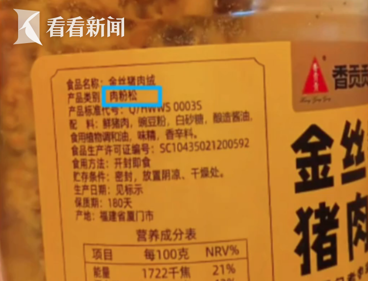 肉松里怎么会有豌豆粉呢?原来,肉松类产品分为四大类,其中除了肉松,还有肉粉松。虽然只有一字之差,但在淀粉含量上却差了很多,当然成本也不同。然而在市场上,不少商家在商品标注和宣传中,却故意模糊两者的界限。
