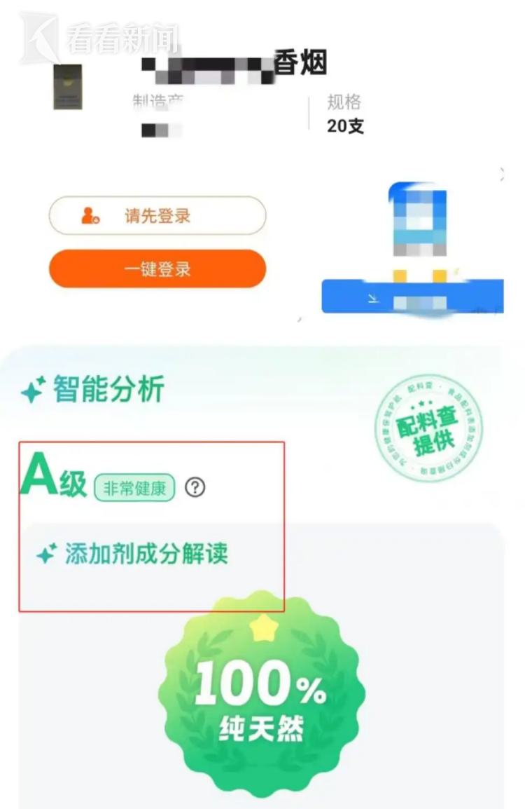 对于不少网友调侃配料软件测评香烟有误一事,记者测评中,一款软件给出与网友测试相同的结果:A级,非常健康,纯天然。