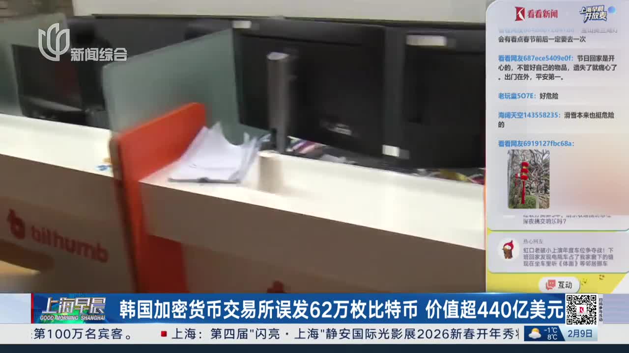 韩国加密货币交易所误发62万枚比特币 价值超440亿美元