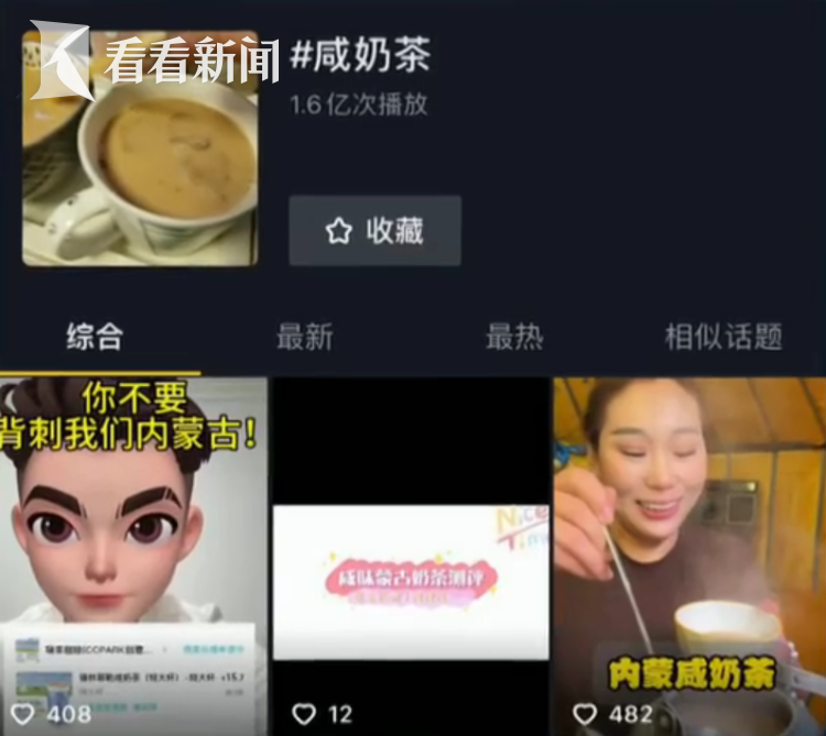 在某社交平台上,“咸奶茶”的标签浏览量超4500万,#泰式咸法酪#等相关话题浏览量达3500多万、讨论量23.4万,抖音#咸奶茶#相关视频播放量更是突破1.6亿次。