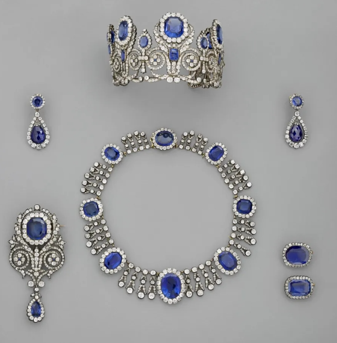 法国卢浮宫发布的公告说,共有8件具有“无法估量历史价值”的珠宝被盗,具体包括:玛丽-阿梅莉王后与奥尔唐斯王后头饰套件中的冠冕、蓝宝石套装中的项链、蓝宝石套装中的耳环;玛丽-路易丝王后的祖母绿套装中的项链、耳环;圣物匣式胸针;欧也妮皇后的冠冕、大襟花胸针。