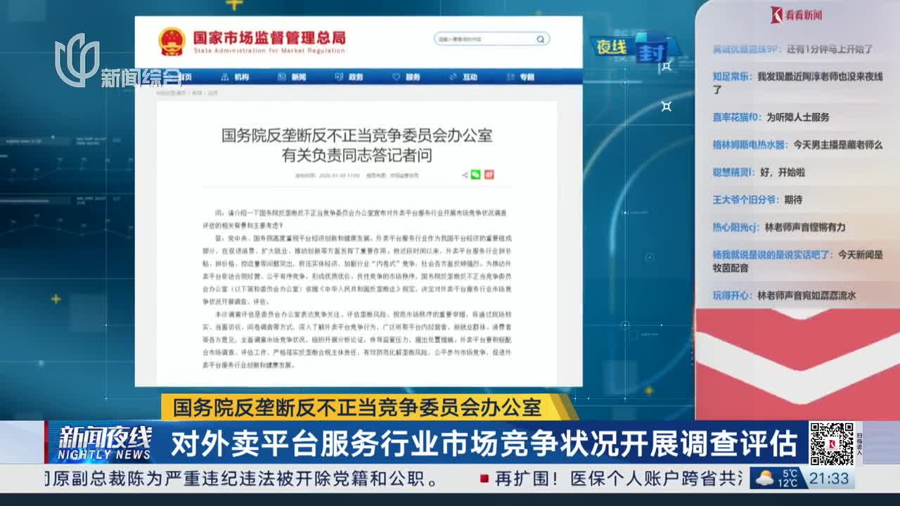 国务院反垄断反不正当竞争委员会办公室 对外卖平台服务行业市场竞争状况开展调查评估