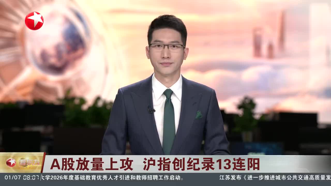 A股放量上攻 沪指创纪录13连阳