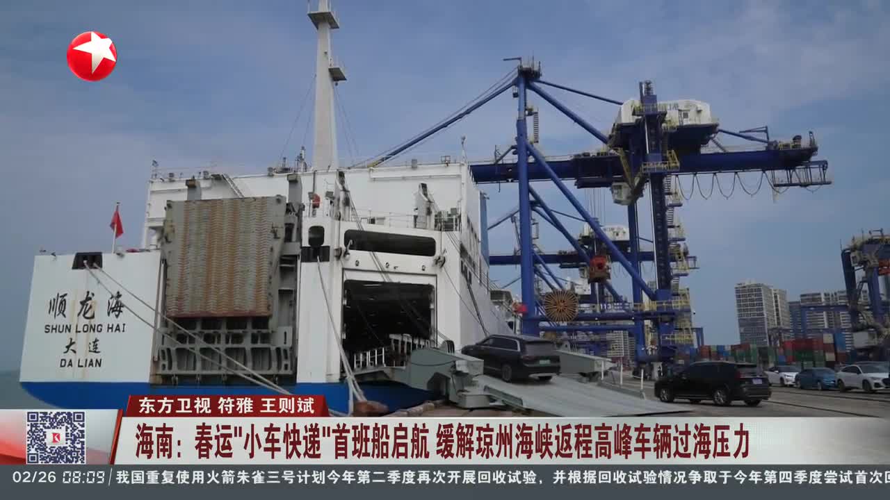 海南:春运“小车快递”首班船启航 缓解琼州海峡返程高峰车辆过海压力