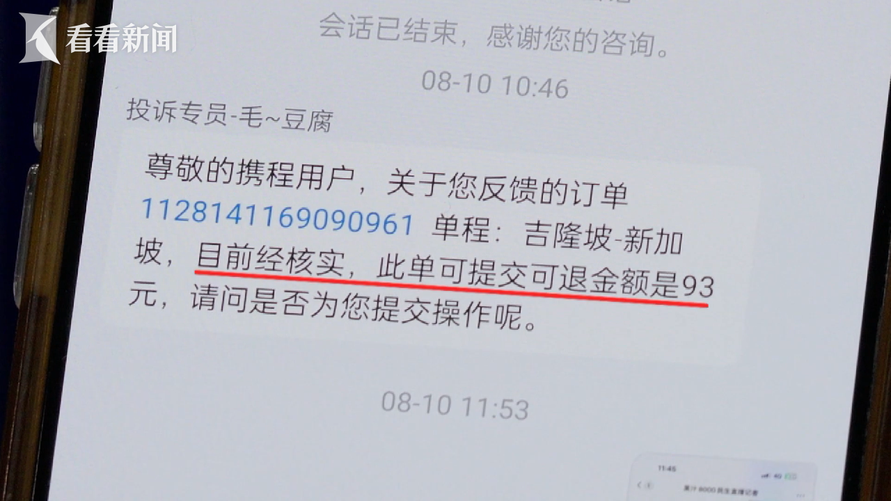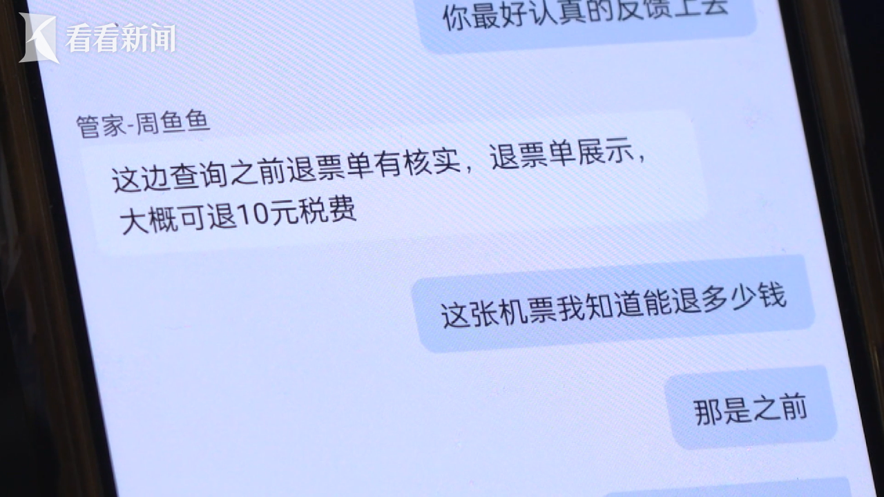 对这一结论,朱先生表示不能接受,他又和平台争论了10天,客服终于松口表示可以退93元,然而朱先生等钱到手一看,居然还是10元。朱先生要求平台出示航空公司的退税凭证,哪怕一张截图也行,但对方表示“这是内部信息,无法提供”。