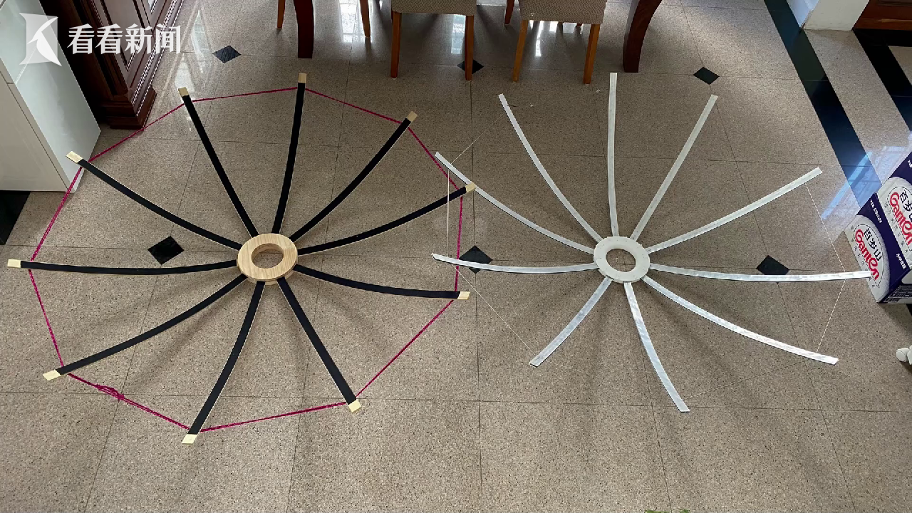 “我们把软木泡在热水里,塑成抛物线形状,等它干透就成型了。”李飞翰介绍着他们的“热弯成型工艺”。
