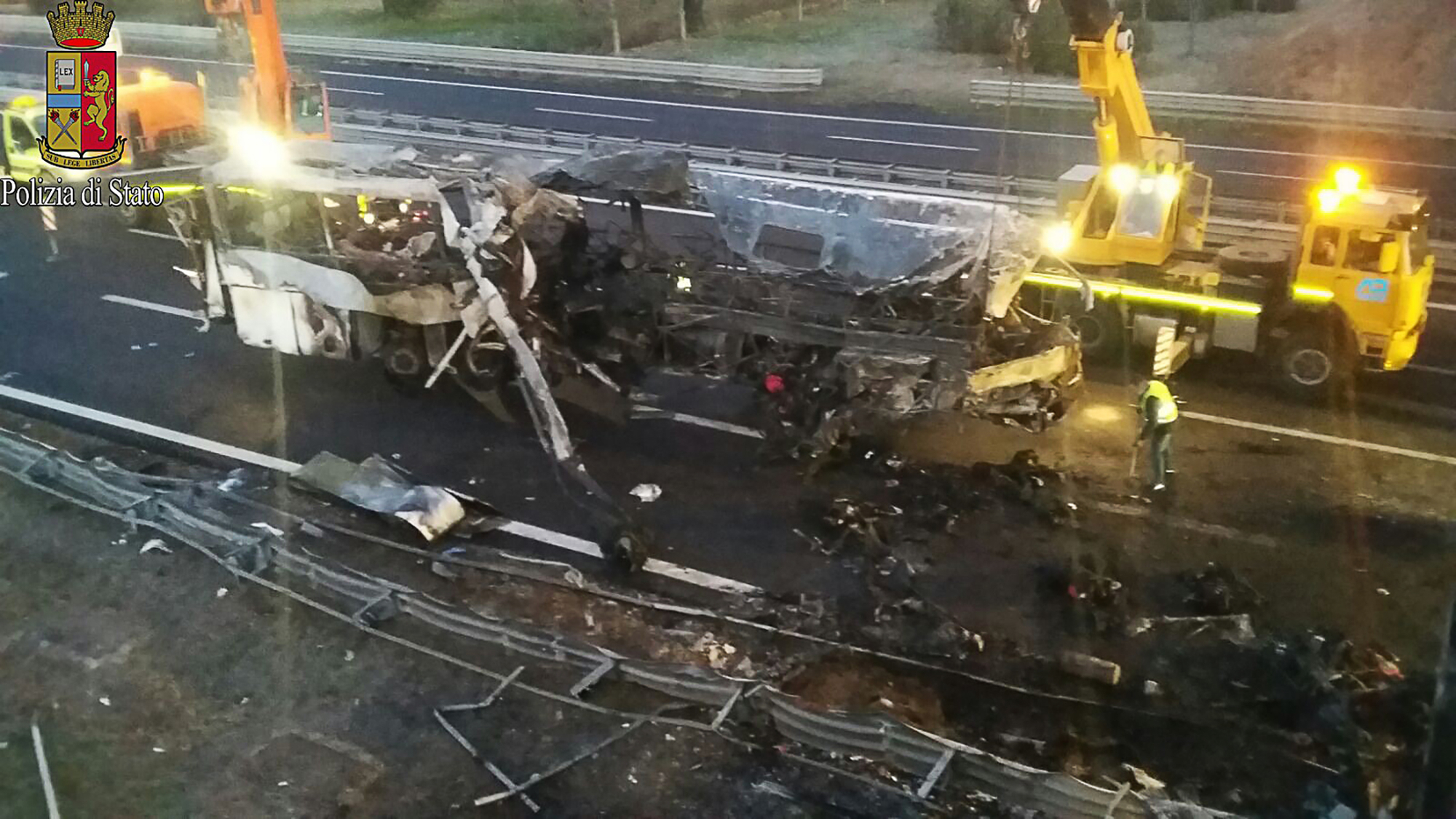 报道称,发生撞击时,部分乘客被甩出车外,其余乘客部分得以逃生,部分被困在随后起火的车内。大巴最终被完全烧毁,一些遇难者的身份无法确认。
