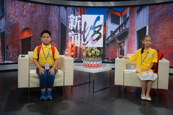 应明扬小记者和搭档一起在新闻坊直播间“嘎讪胡”。