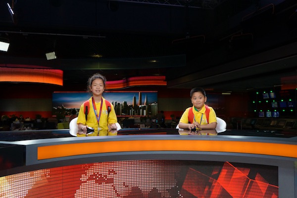 应明扬小记者怀着激动的心情坐上主播台,化身小小新闻主持人。