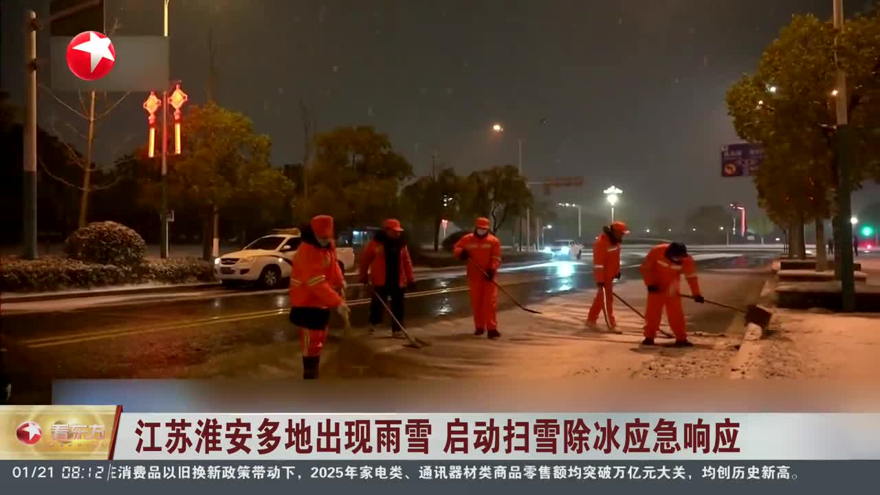 江苏淮安多地出现雨雪 启动扫雪除冰应急响应