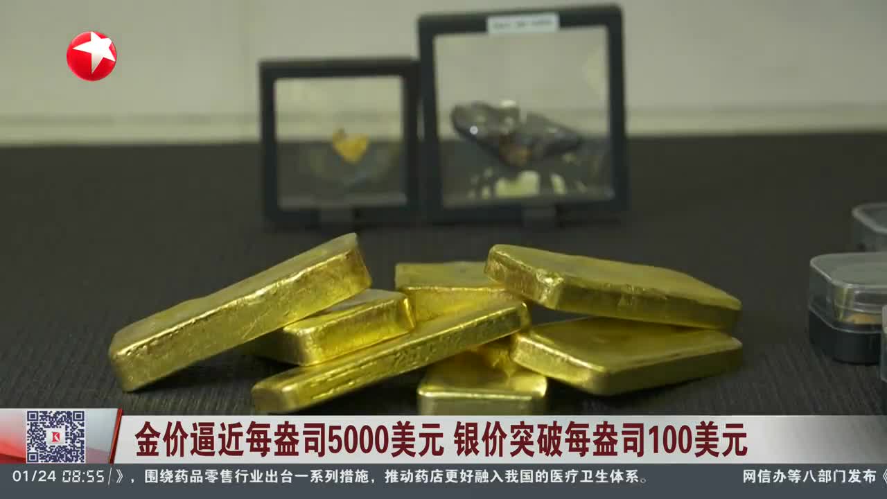 金价逼近每盎司5000美元 银价突破每盎司100美元