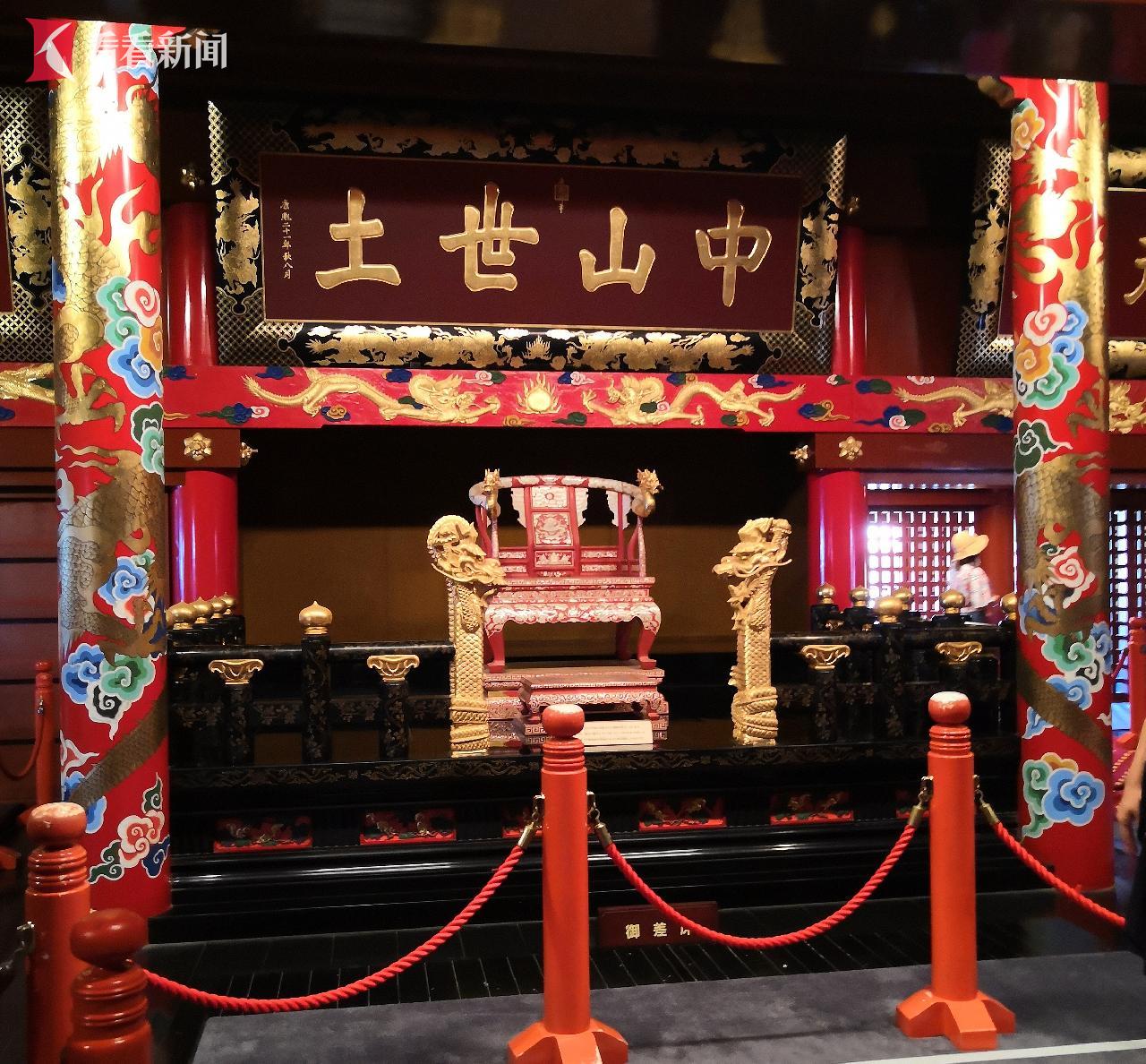 首里城正殿悬挂着清康熙皇帝赐写的“中山世土”榜书牌匾。