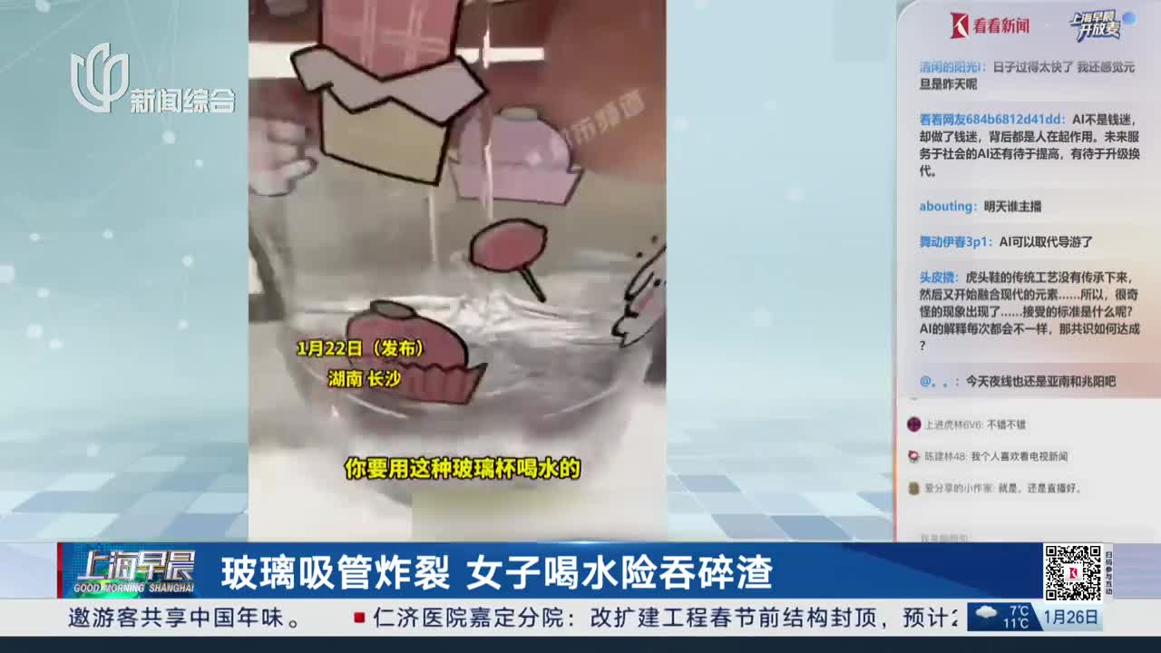 玻璃吸管炸裂 女子喝水险吞碎渣