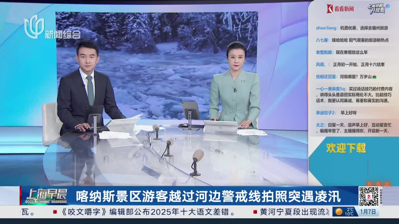 喀纳斯景区游客越过河边警戒线拍照突遇凌汛 河道瞬时变宽 游客险被急流卷入