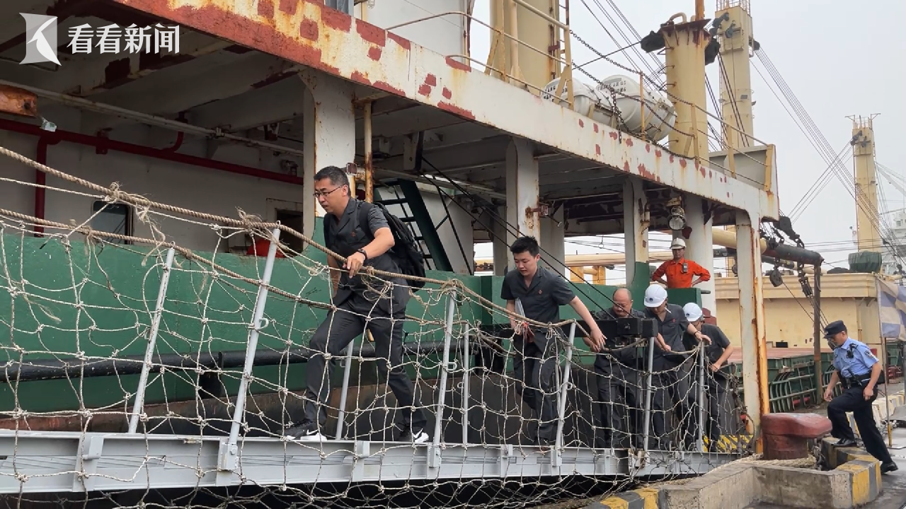 6月15日,周日,阴雨连绵。在长江镇江段锚地,执行人员们乘交通艇来到“TRANG AN 05”轮下,攀爬近8米高的湿滑舷梯,登上了船舶,正式向船长宣布解除扣押,并送达相关法律文书。