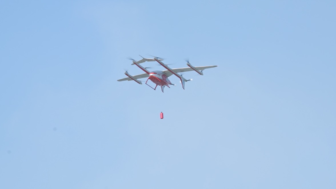 随后,高喷消防车到场,让火势得以彻底扑灭。这次演练以低空经济高质量发展为背景,演练中还进行了无人机拦截、物资投送、漏点监测等科目。