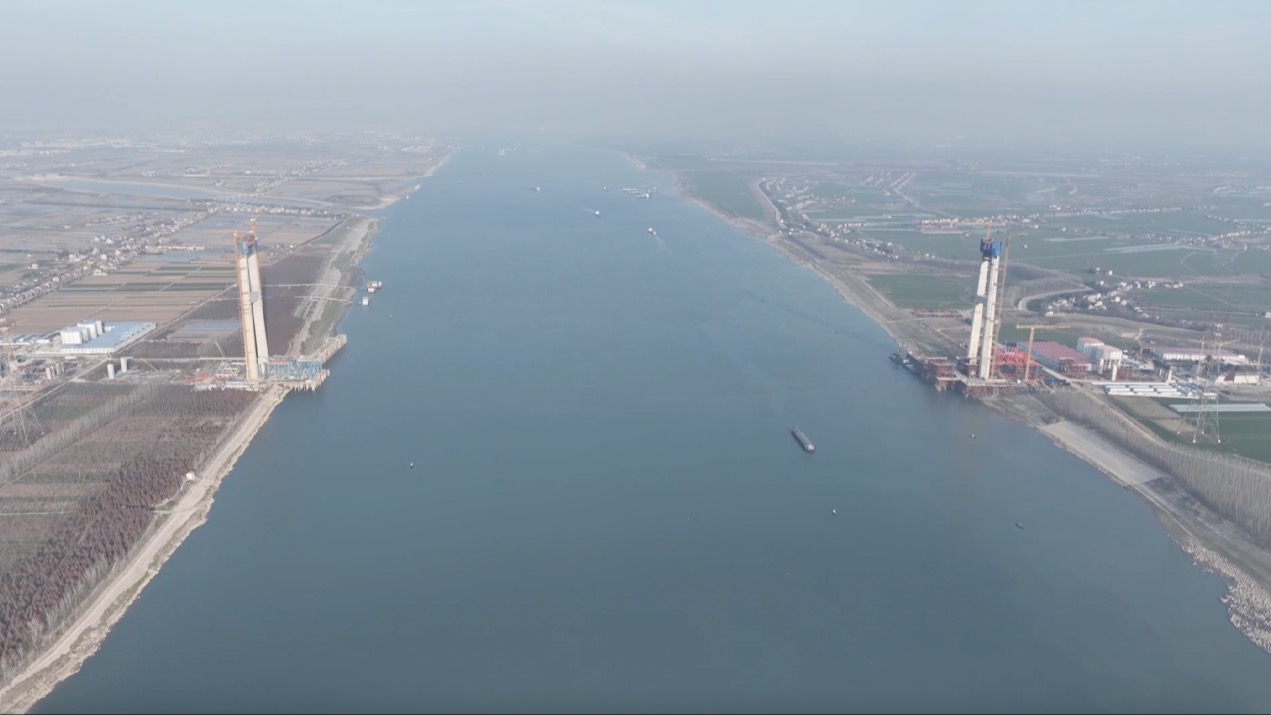 荆州李埠长江公铁大桥两岸主塔全部封顶