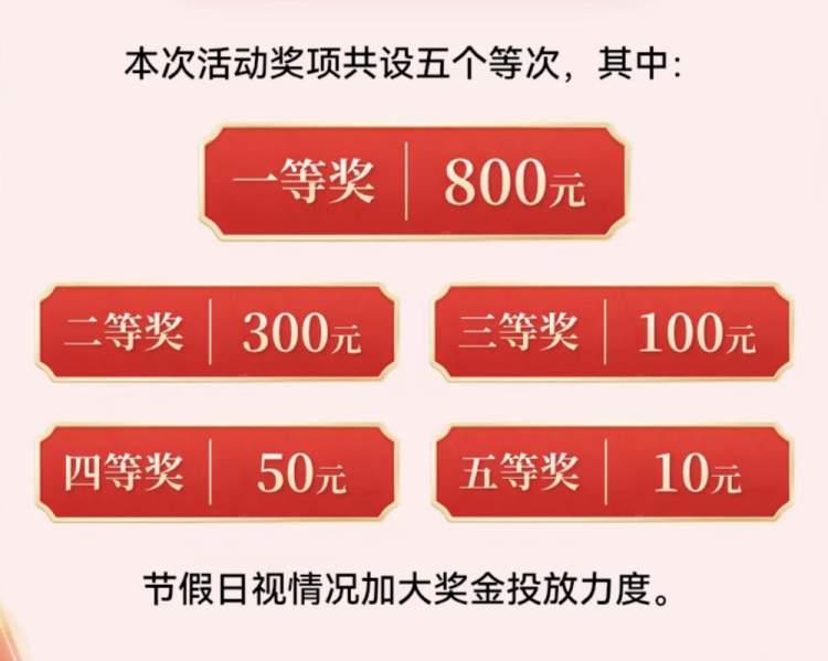 明天(2月12日)上午10点起,上海消费者的发票能抽奖了!最高800元!2月12日至7月31日,活动分六期覆盖春节、五一。无论市民游客、线上线下,在餐饮、零售、住宿、旅游等八大行业,单张满100元、抬头实名的电子发票即可参与。奖金总额高达3亿元,设五档:800元、300元、100元、50元、10元,小额奖占比更高,节假日还加码。