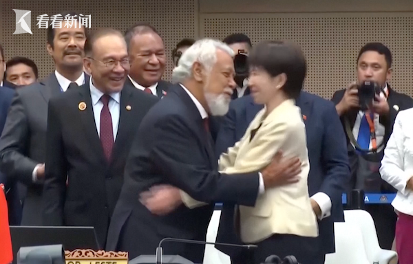10月26日,东帝汶总理夏纳纳·古斯芒在东盟峰会上遇见新当选的日本首相高市早苗。似乎是事先毫无准备,古斯芒显得手足无措,他先是整理衣服,然后做出半蹲等奇怪动作,最后“鼓足勇气”去亲吻高市的手并与之行贴面礼。高市早苗只能转头躲避。