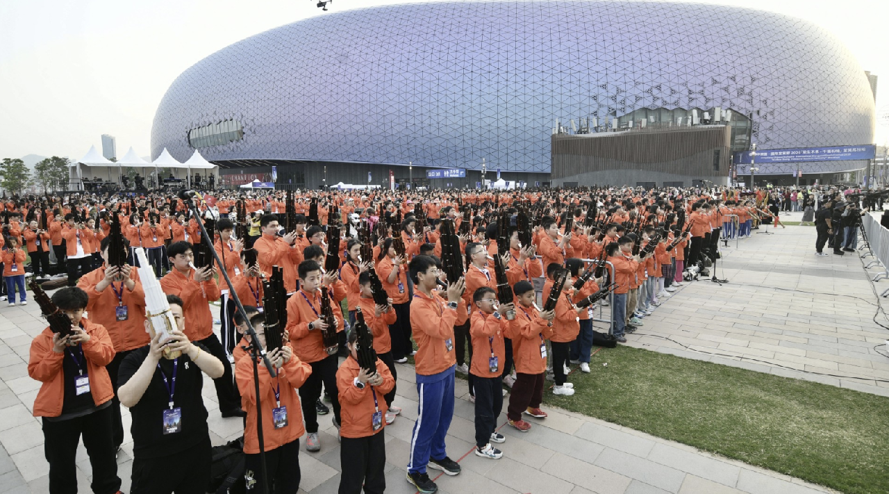 由香港中乐团主办的文体旅盛事“国际笙簧节2026”,3月22日在启德体育园举行首场大型活动——“笙生不息——千簧和鸣”笙簧马拉松暨黄昏户外音乐会。乐团成功召集1230名来自海内外的笙簧乐手,世界首演由乐团委约香港作曲家伍卓贤创作的新作《千簧和鸣》,并刷新吉尼斯世界纪录最大规模的簧鸣乐器合奏。