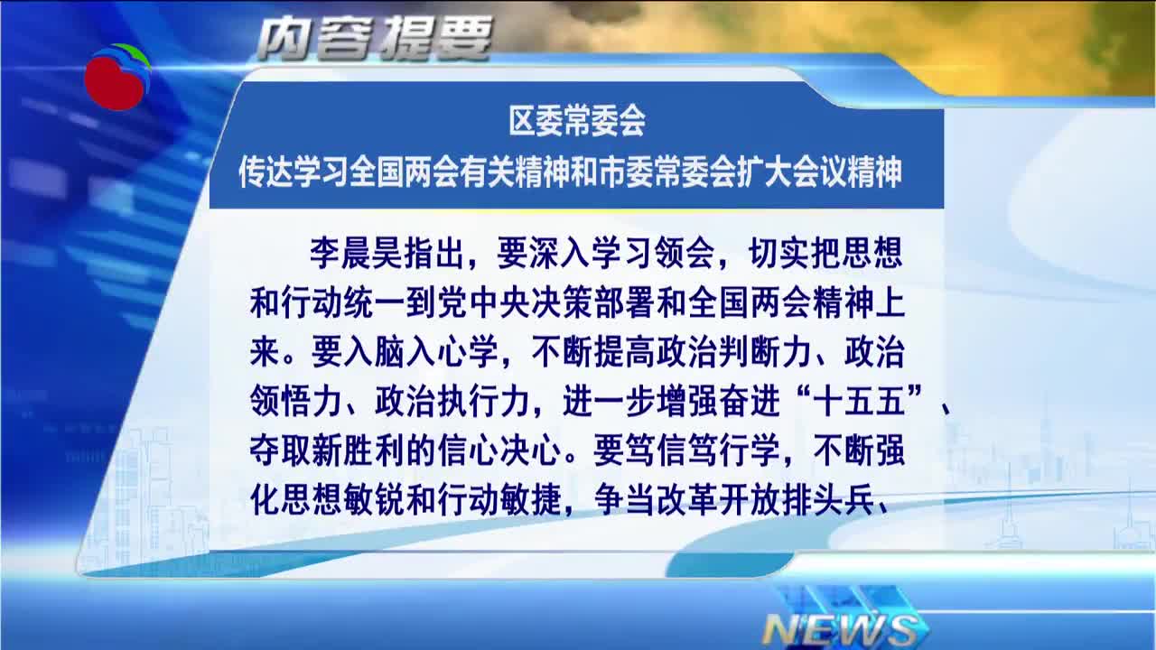 区委常委会扩大会议举行 传达学习全国两会精神