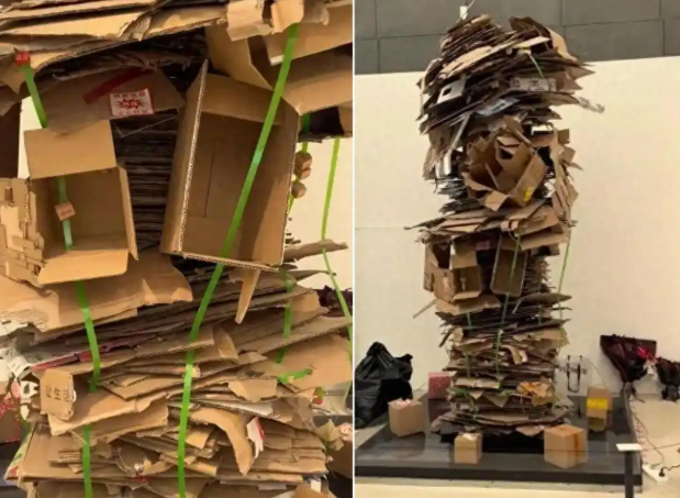 实际上,由艺术作品引发的争议并不少见。此前,中央美术学院毕业展览中的装置艺术《超级蜂窝》就引发了热议。这一作品以纸板堆叠的纸箱为主体,配以屏幕展示的纸箱制作、回收与搅碎过程,不少人质疑其是堆废纸,并说“垃圾也能成为艺术品?”
