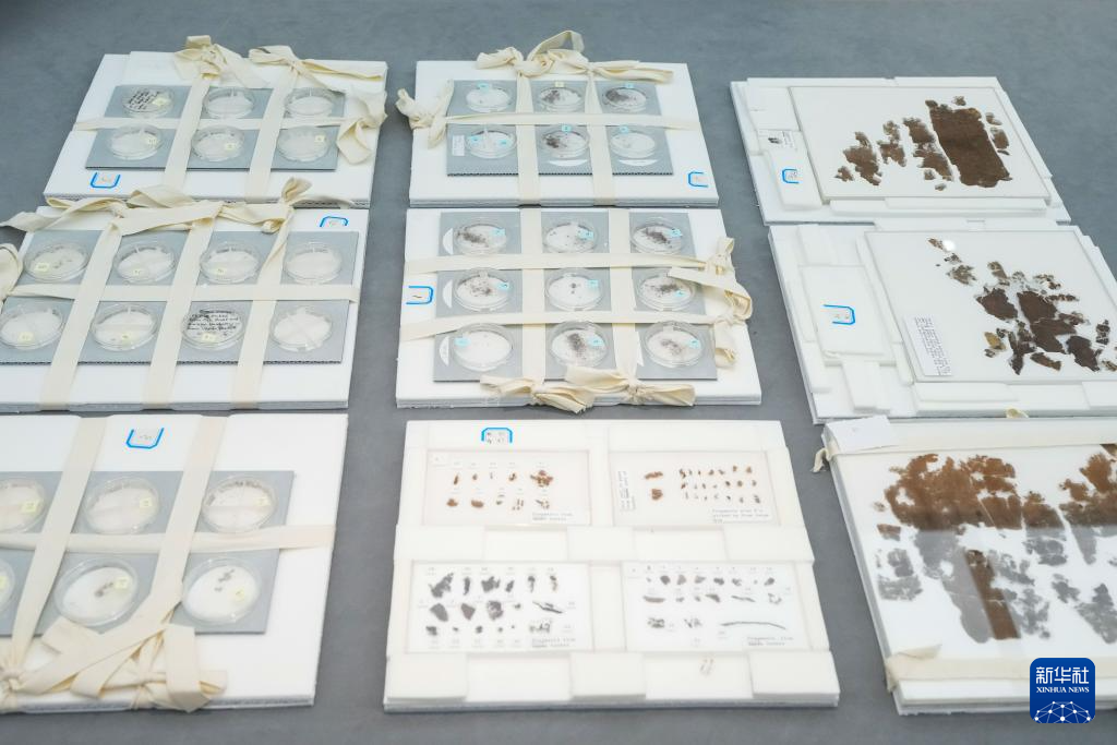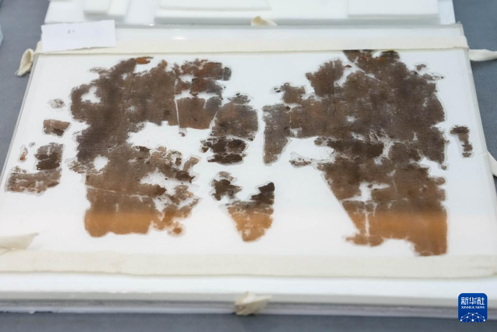 记者了解到,帛书于今年9月10日运抵湖南省博物馆后,已完成14天环境适应观察,经无损评估后保存于恒温恒湿环境中。目前,馆内已完成全部帛书的标准化影像采集,并在一片未完全剥离的帛书上发现肉眼不可见的墨迹字样40余个。