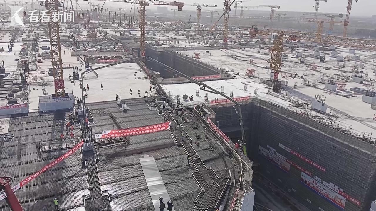 与此同时,东方枢纽区域的另一重大工程——上海东站今天也迎来了重要节点。车站站场区20米盖板层正式完工,标志着站场区工程进度顺利过半。